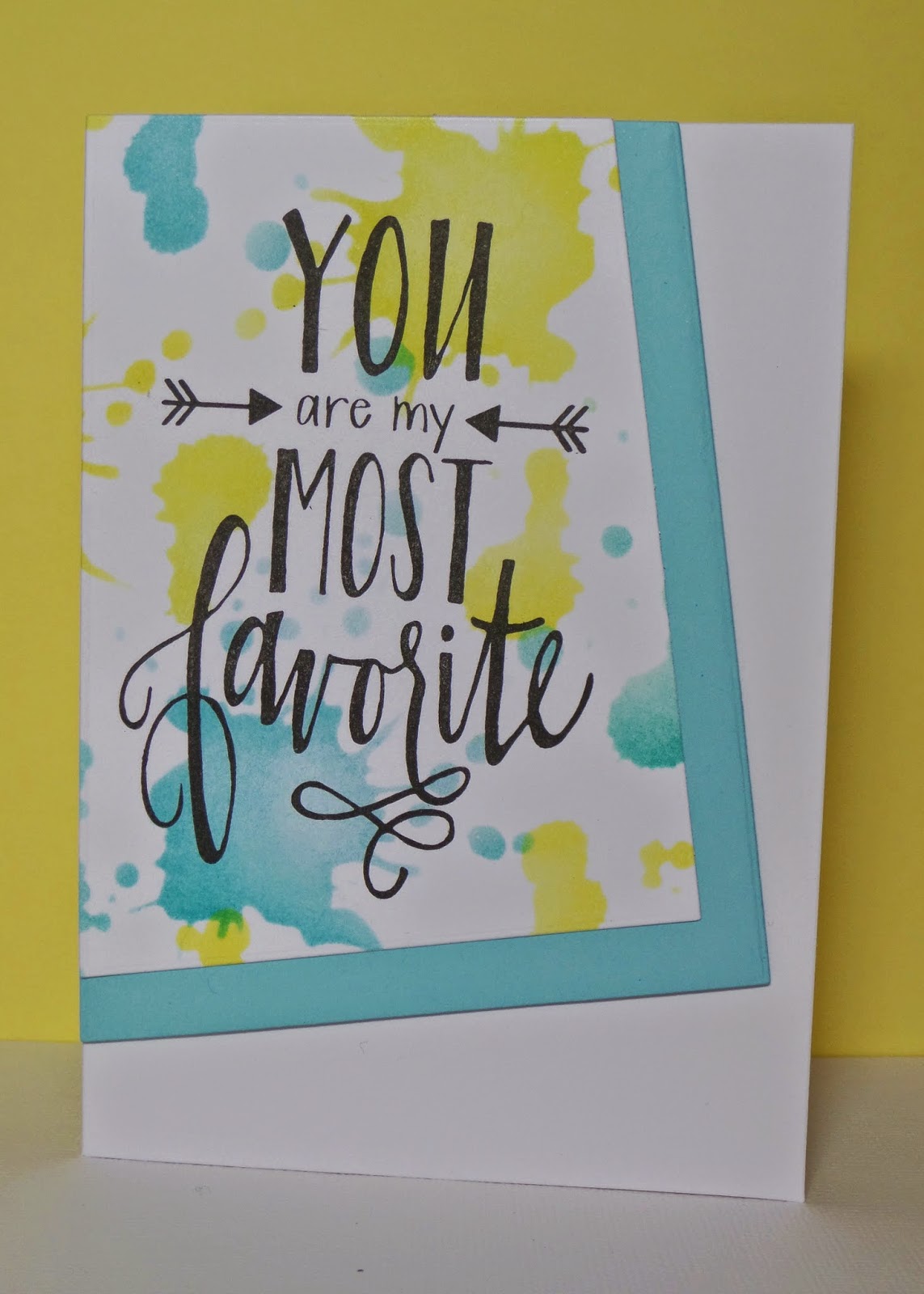 I love this big sentiment - it works great as a focal point on a card! I used a Tim Holtz stencil in the background with Squeezed Lemonade and Tumbled Glass ink. I thought this splattered effect background would work well with Addicted to CAS's current challenge with the cue word - grunge.