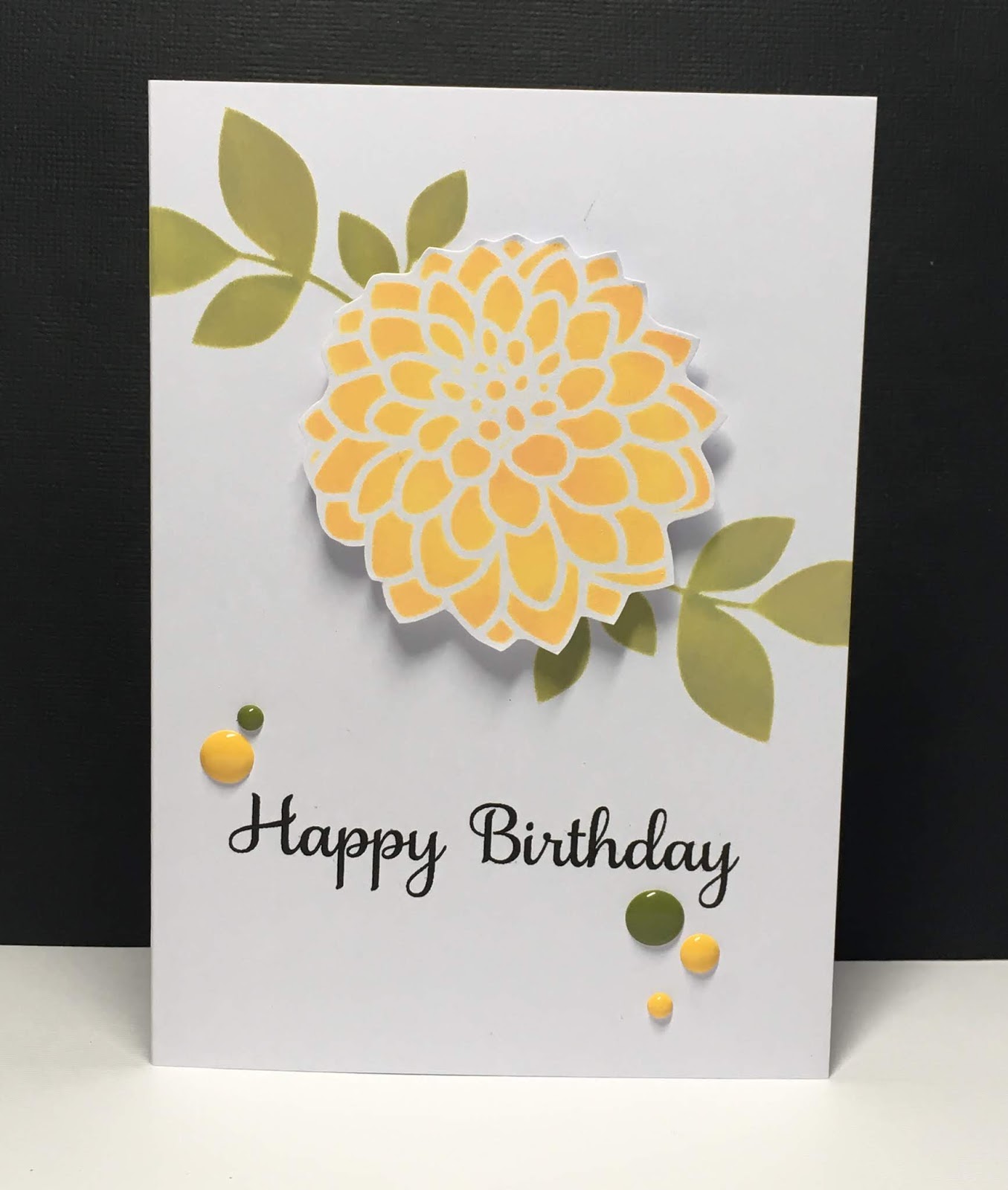 While I had the stencil out, I inked through the dahlia style flower with distress inks and used it for a birthday card.