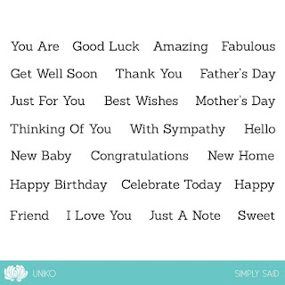 Today we are focusing on an essential stamp set that Bev has put together for the Uniko February release which goes live on 11 February. Simply Said is a fab collection of sentiments in a plain font which can be used for a range of occasions and styles.