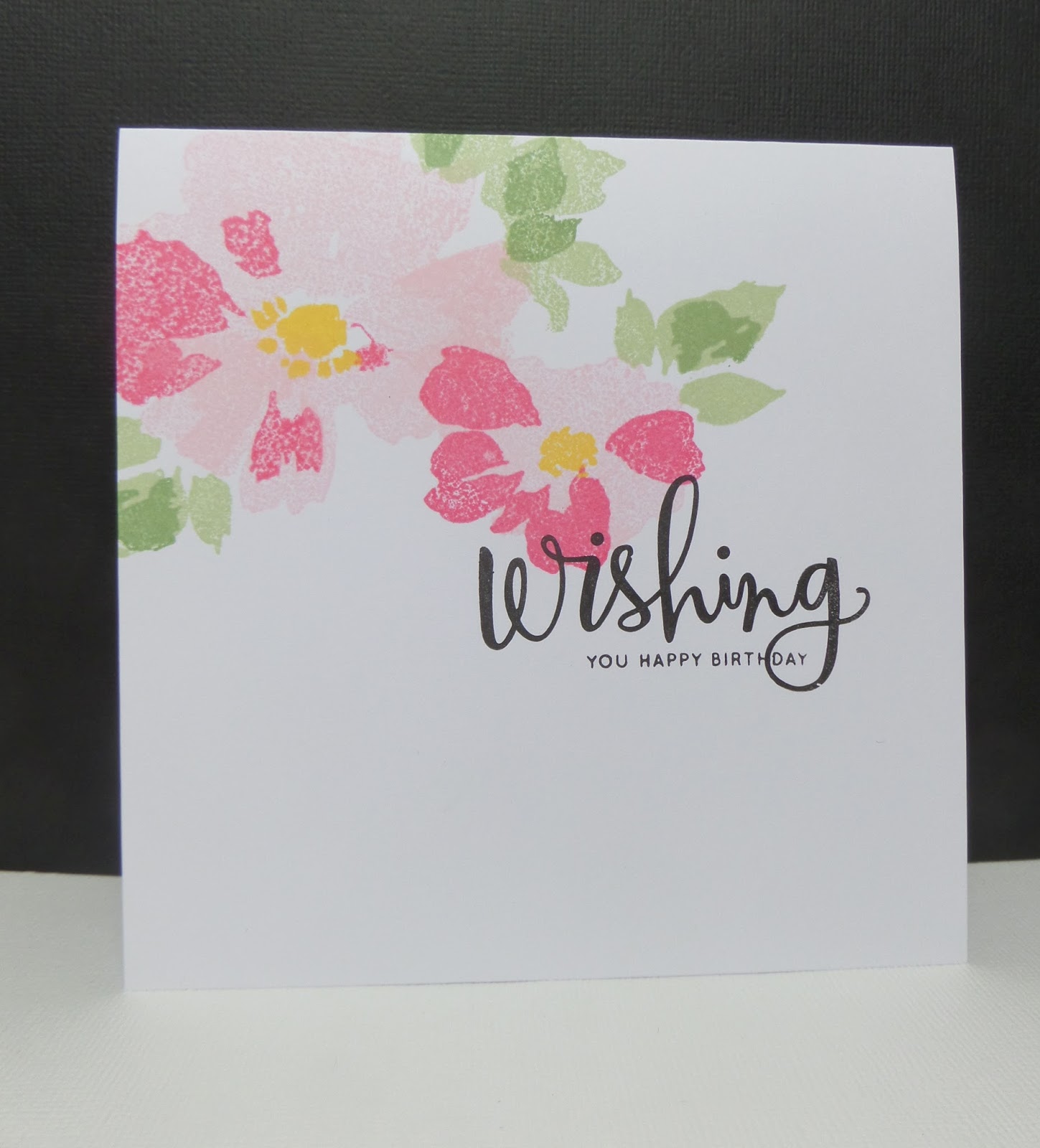 I used the watercolour flower stamps from Altenew and stamped them in soft pinks and greens. The sentiment is from Simon Says Stamp.