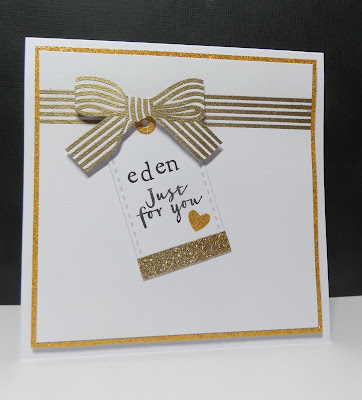 I gold embossed the ribbon and bow from Avery Elle and cut the bow out so it was popped up over the tag. Touches of gold glitter card were added to increase the level of bling and I personalised the tags with a very old alphabet stamp. As well as CASology, I will link up the card to Simon's Wednesday Challenge with the theme of 'gift it'.