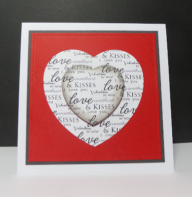 I resized the text and printed it in grey and coloured the valentine heart in maroon/burgundy to match the card mat beneath. I popped the heart up on foam to add a bit of dimension.
