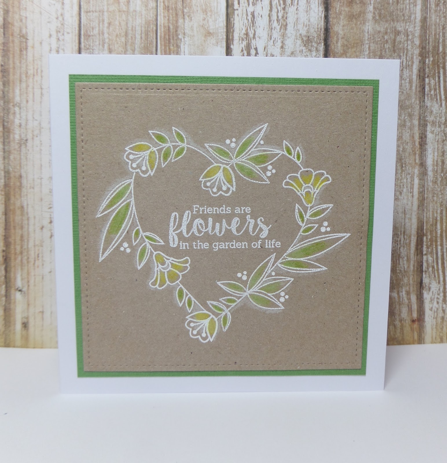 First up is Originally Organic - Additions which I have white embossed on to kraft.  I added touches of pencil colouring to highlight the images and left it fairly simple.  I thought the yellows and greens gave a look of spring:)
