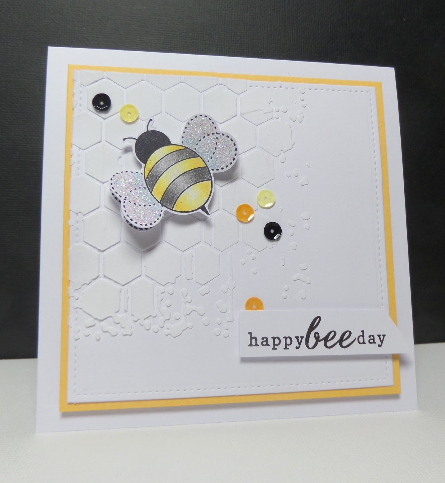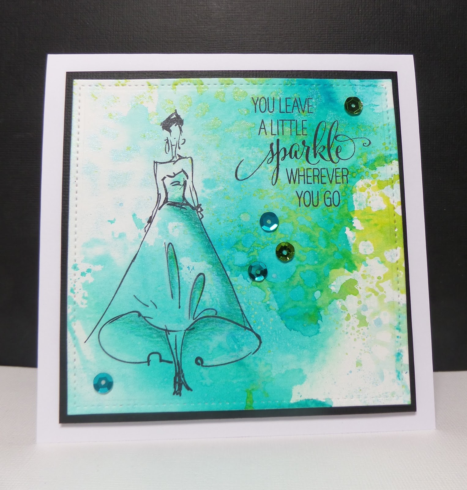 I used a Memory Box die to create the apertures and popped the panel up over the distress ink card base - Blueprint Sketch, Salty Ocean, Peacock Feathers, Tumbled Glass and Cracked Pistachio. A strip of black glitter card and a sentiment white embossed on black add some contrast. The sentiment is from Waltzingmouse Stamps - have you heard the sad news that the store is closing? Head over to pick up a set before Claire closes up at the end of March. I am a huge fan of WMS and Claire's designs.